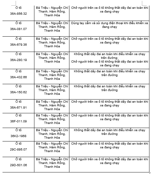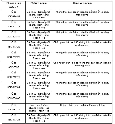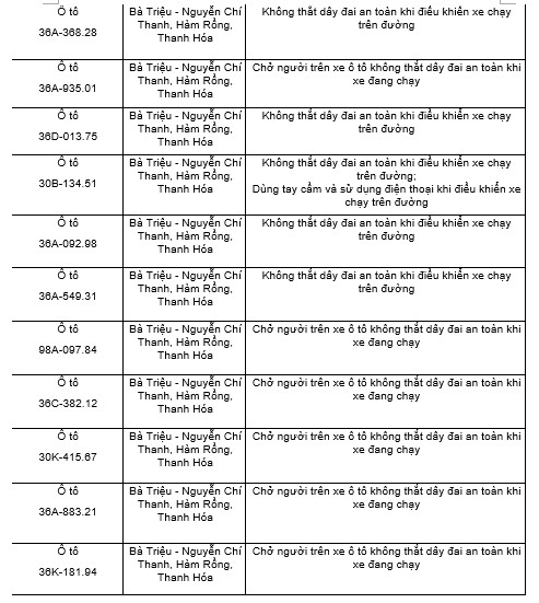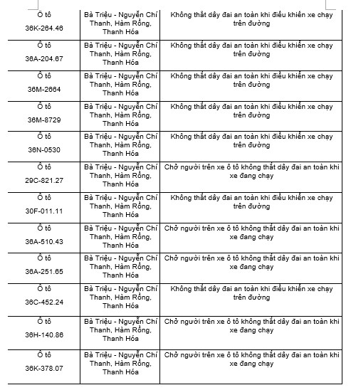 According to information from the Traffic Police Department of Ninh Binh Provincial Police, in the period from March 11 to March 2026, functional forces have fined many car owners for not wearing safety belts. The list is as follows: