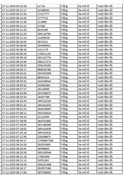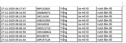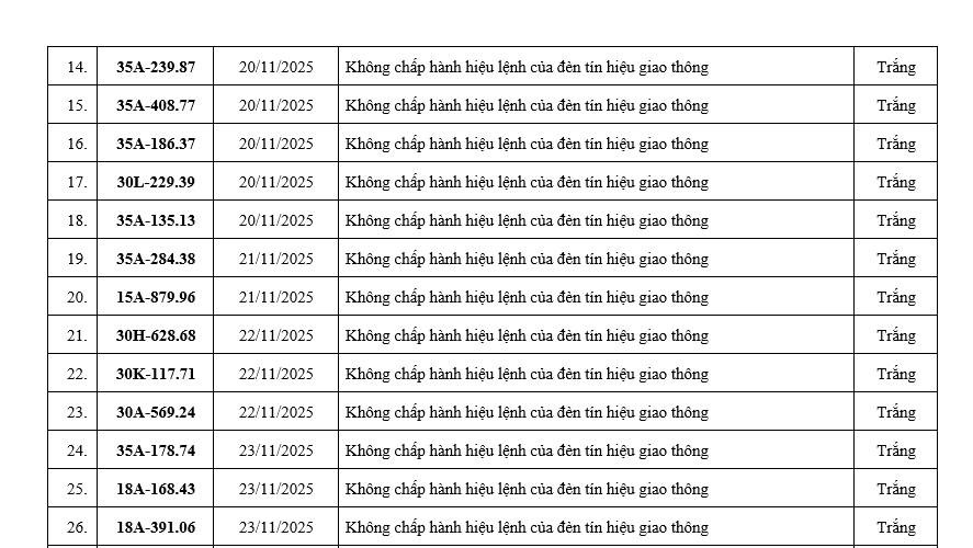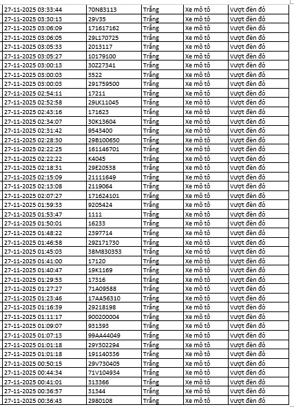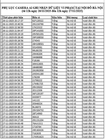 The Traffic Police Department said that from 12:00 on November 26, 2025 to 12:00 on November 27, 2025, through extracting data from the A.I camera piloted for installation in Hanoi's inner city (intersection of Pham Van Bach - Hoang Quan Chi streets), it automatically detected: