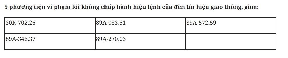 Bac Ninh traffic police said that from February 28 to March 6, through exploiting the surveillance camera system and using professional equipment, traffic police forces recorded many cases of running red lights. The list is as follows: