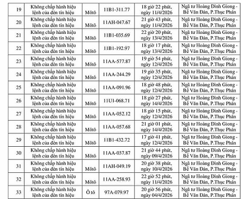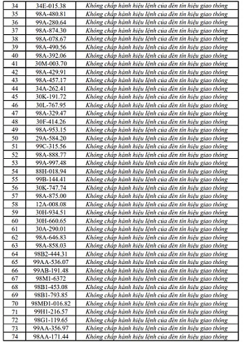 The Traffic Police Department, Cao Bang Provincial Police also said that from April 2 to April 15, through exploiting the surveillance camera system and using professional equipment, the traffic police force recorded many violations of running red lights as follows: