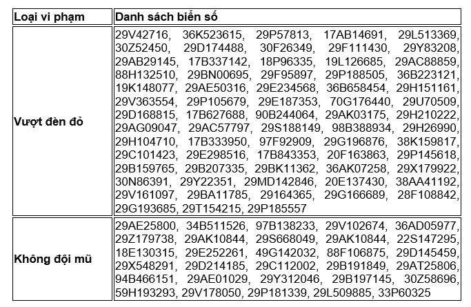 The Traffic Police Department said that on February 1st, the police issued remote fines in many cases. Among these are motorbikes violating at the Pham Van Bach - Hoang Quan Chi street intersection (Hanoi) for the following violations: