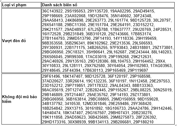 The Traffic Police Department, Cao Bang Provincial Police said that from March 2 to April 15, through exploiting the surveillance camera system and using professional equipment, the traffic police force recorded many cases of motorbike violations. List as follows: