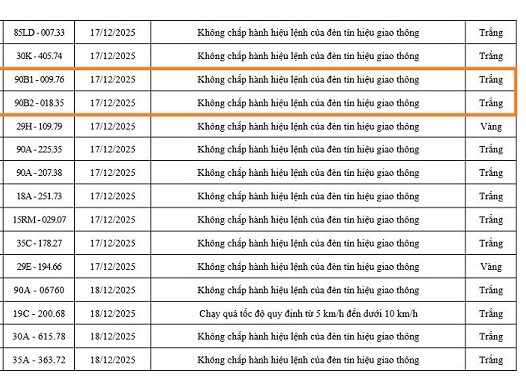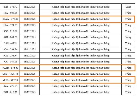 Ninh Binh Provincial Traffic Police also announced a list of remote fines from December 16th to December 24th. Notably, among these, motorbike owners (marked) violated the following violations: