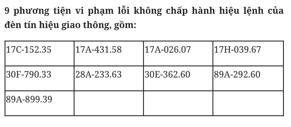 The Traffic Police Department, Hung Yen Provincial Police said that from January 19 to January 25, many car owners were fined for running red lights. The list is as follows: