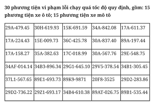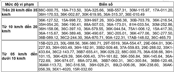 Thanh Hoa Police announce the list of vehicles fined by traffic cameras on some national highways from January 1 to January 15. In which, on National Highway 1, the following vehicle owners are fined for speeding: