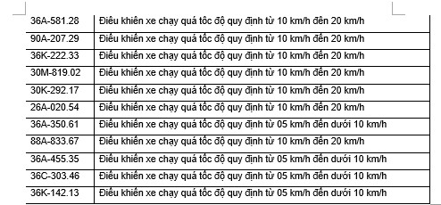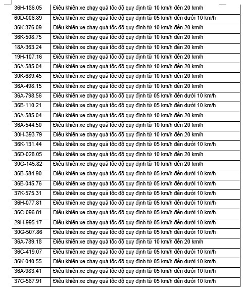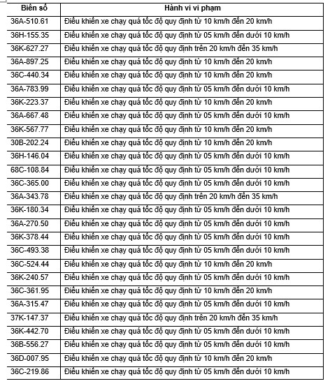 On April 29, Bac Ninh Police said that from April 20 - April 26, through the camera system, functional forces discovered many cases of speeding. Accordingly, the list of violations in Kep commune includes license plates: