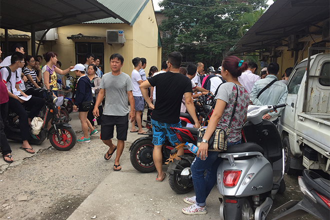 | Xếp hàng chờ làm thủ tục đăng ký xe máy điện tại CA quận Đống Đa. |