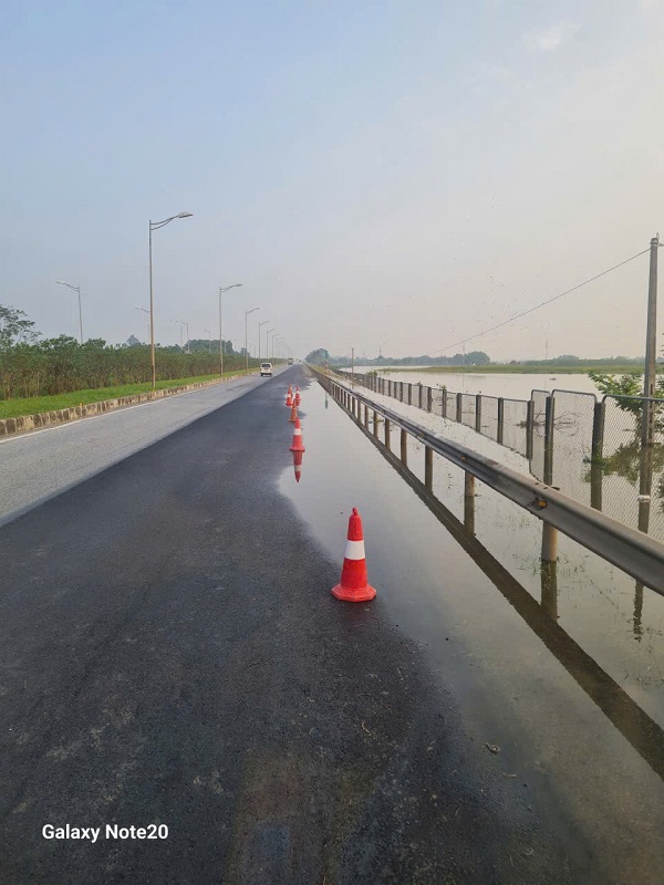The flooded point at Km28+200 on the left of the route has been completely receded.