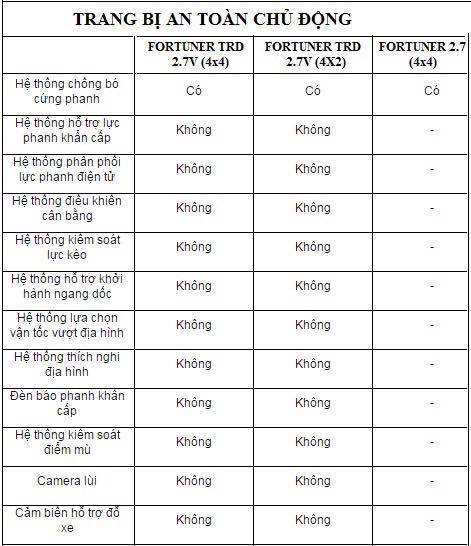 | Các trang bị an toàn trên xe Fortuner. |