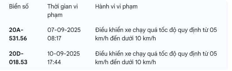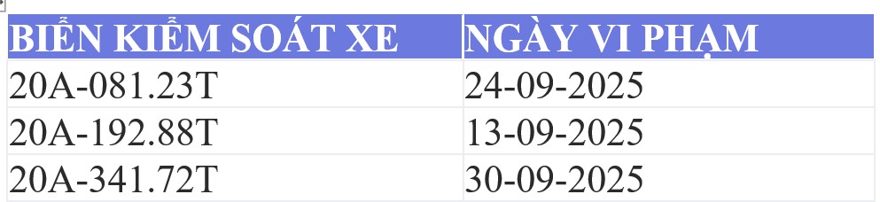 Hanoi Police announced the list of fines from September 1 to September 30. Notably, among these are Thai Nguyen license plate cars as follows: