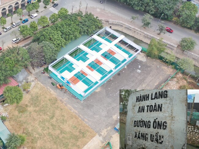 Regarding the pickleball court project violating the safety corridor of the gas pipeline, speaking with a reporter from Lao Dong Newspaper, a representative of the Vietnam National Petroleum Group (Petrolimex) affirmed that from November 2024 to February 2025, on the section of the pipeline from Hai Duong Petroleum warehouse to Duc Giang Petroleum General warehouse, at the location in Phuc Loi ward, Long Bien district, Hanoi, there were serious violations due to people building a sports field within the safety corridor of the pipeline.