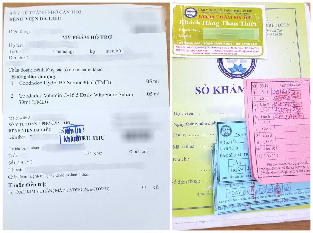 As Lao Dong reported in the article Suspected hospital in Can Tho injecting cosmetics into the skin, according to the patient's reflection, Can Tho Dermatology Hospital used 4 types of cosmetics to apply to the sample prescription, using a Hydro Injector II nutrient injection machine to inject into the patient's face for a long time.