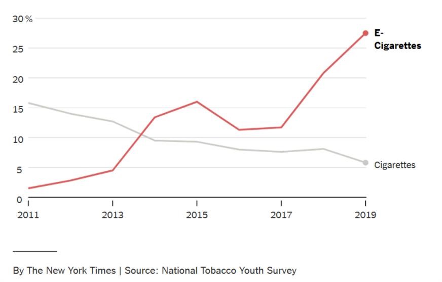 Trước hàng loạt ca tổn thương phổi mà hầu hết nguyên nhân chủ yếu từ việc sử thuốc lá điện tử có chứa chất THC và Vitamin E Acetate (gọi tắt là EVALI) gây ra, Tổng thống Trump chỉ đạo FDA hoàn thiện chính sách tuân thủ đối với các sản phẩm thuốc lá điện tử sử dụng hương liệu. Quyền Ủy viên FDA, Ned Sharpless nói rõ chính sách này sẽ ưu tiên công tác thực thi của FDA trong việc đưa ra những yêu cầu để được phép tiếp thị bán hàng (Premarket authorization) đối với các sản phẩm thuốc lá điện tử sử dụng hương liệu (không phải vị thuốc lá điếu truyền thống).