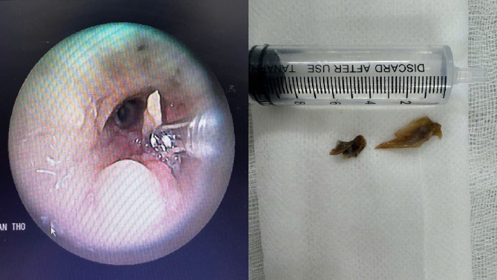 Can Tho - The doctor performed a bronchial endoscopy and successfully removed the foreign object, the duck bone in the man's lung.