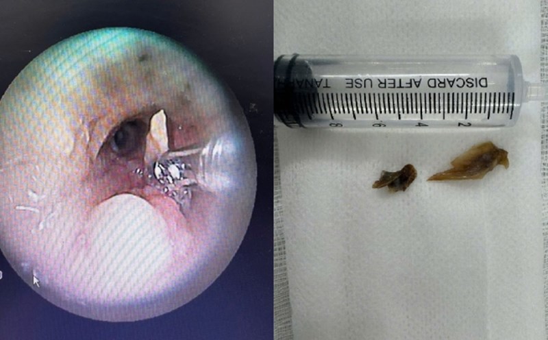 Can Tho - The doctor performed a bronchial endoscopy and successfully removed the foreign object, the duck bone in the man's lung.