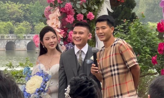 The concise but loving status of the striker currently on the payroll of Binh Duong club quickly received thousands of likes and comments. In the post, Ha Duc Chinh shows off happy moments from the gorgeous wedding ceremony to the simple moments of everyday life but filled with love with her first son.